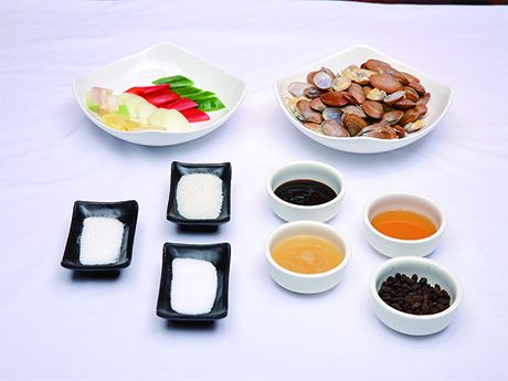花甲先经过出水处理,以便花甲吐出泥沙和有很好的去腥效果。